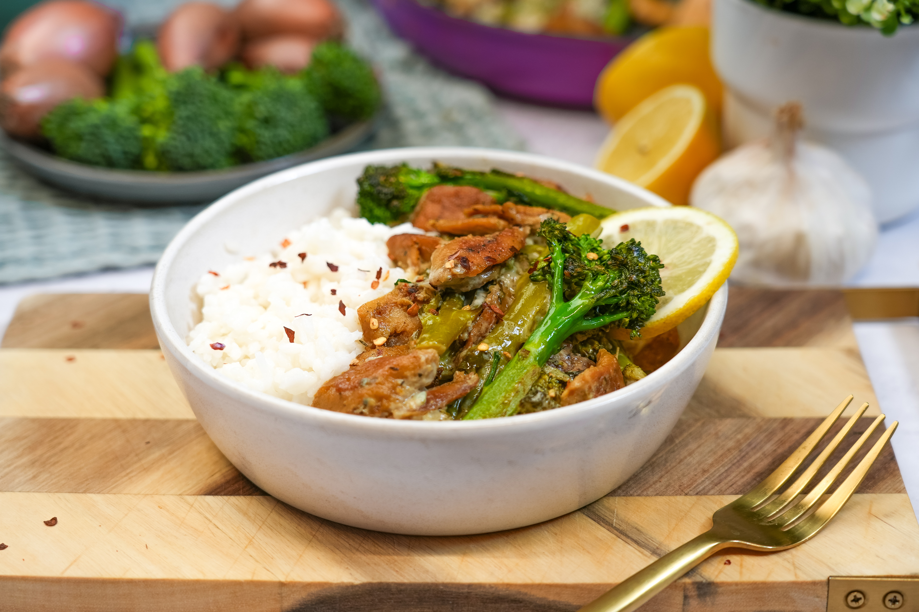 Cremiges Zitronen-planted.chicken mit Brokkoli & Reis