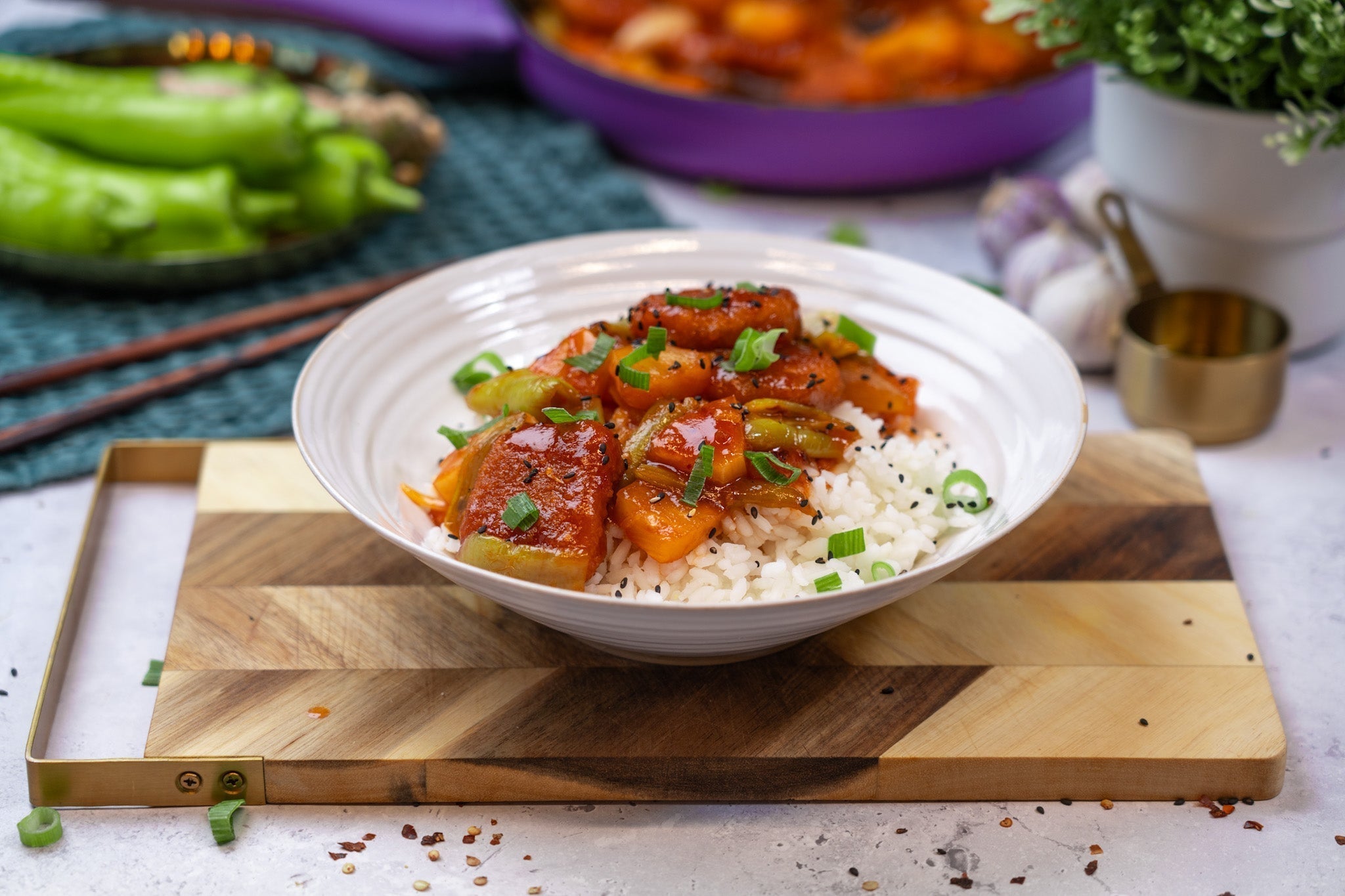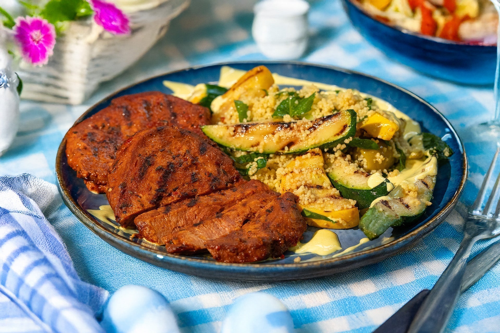 planted.steak Paprika mit aromatischem Couscous und Currydip