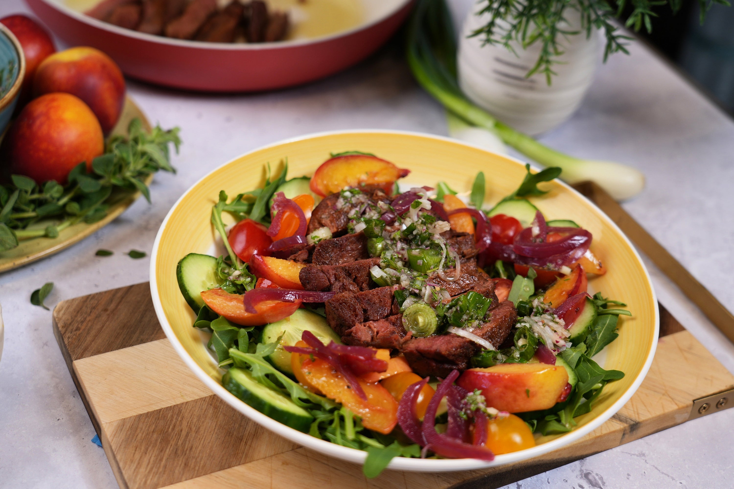 Gegrillter Pfirsich & planted.steak Salat