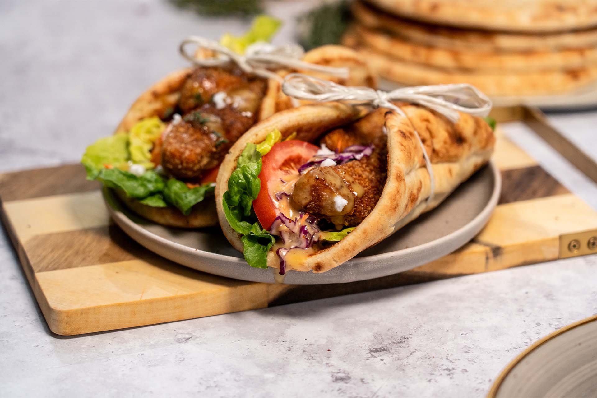 Glasiertes planted.chicken Pita mit cremiger Feta-Aufstrich