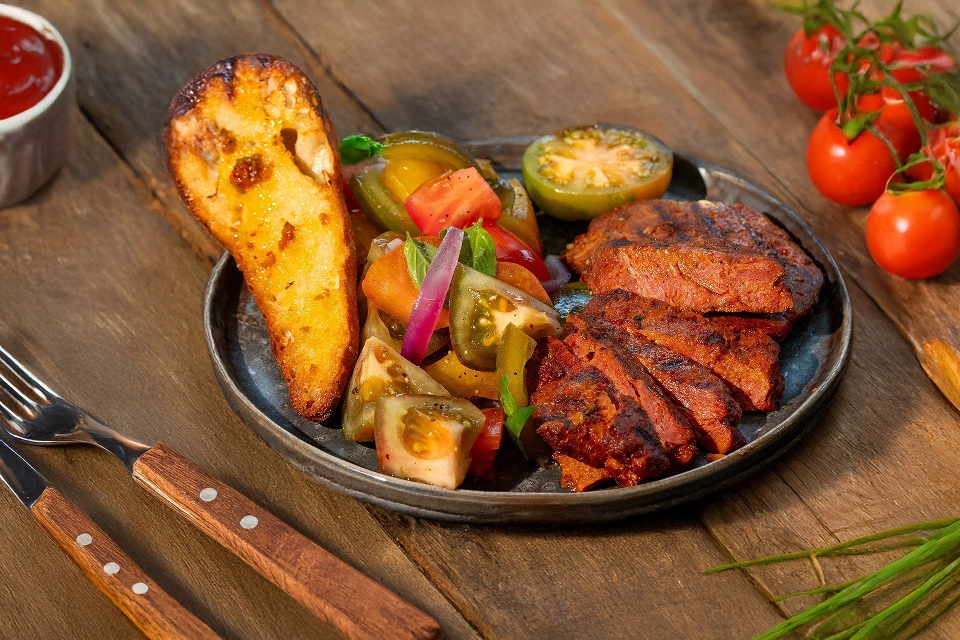 planted.steak Paprika mit Tomatensalat