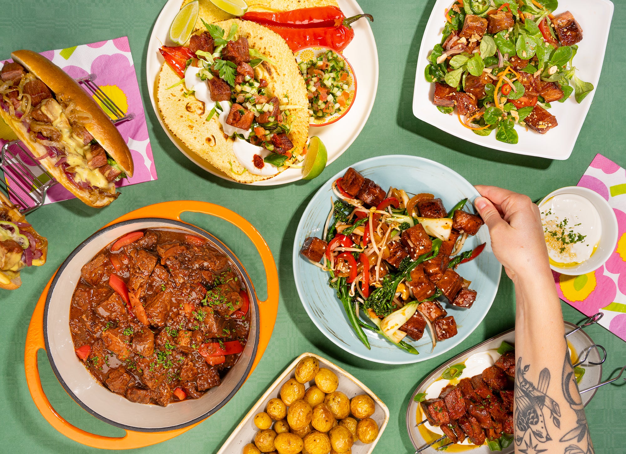Unsere planted.steak Bites sind zarte, saftige Würfel aus unserem feinfaserigen Steakmuskel – jeder Bissen überzeugt mit intensivem Umami-Geschmack, unglaublicher Saftigkeit und zarter Textur.